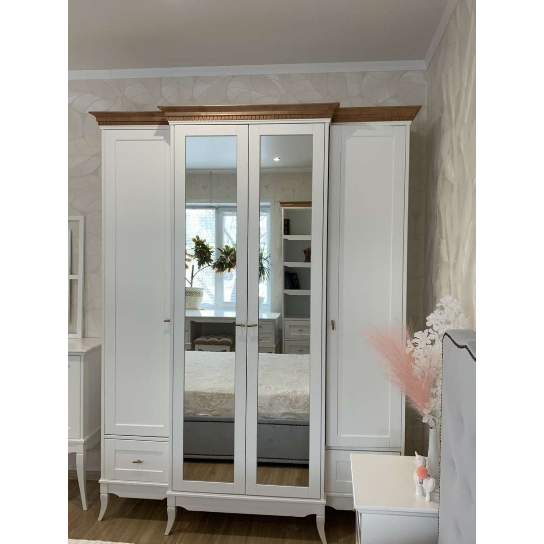 Четырехстворчатый распашной шкаф для одежды Римини MUR-118-04 с зеркалом воплощает в себе классические тренды. Сочетание изящных оттенков удачно освежит Ваш интерьер и придаст знакомым формам новое дыхание. Неповторимые легкость и элегантность этой мебели создадут атмосферу тепла и уюта в Вашем доме.
