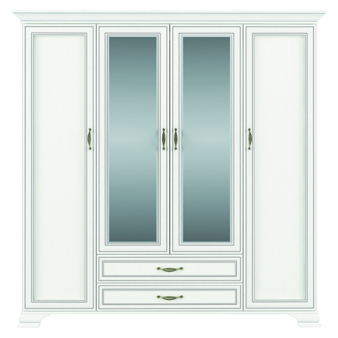 Четырехстворчатый шкаф для одежды с зеркалом Тиффани 4D2S крем вудлайн