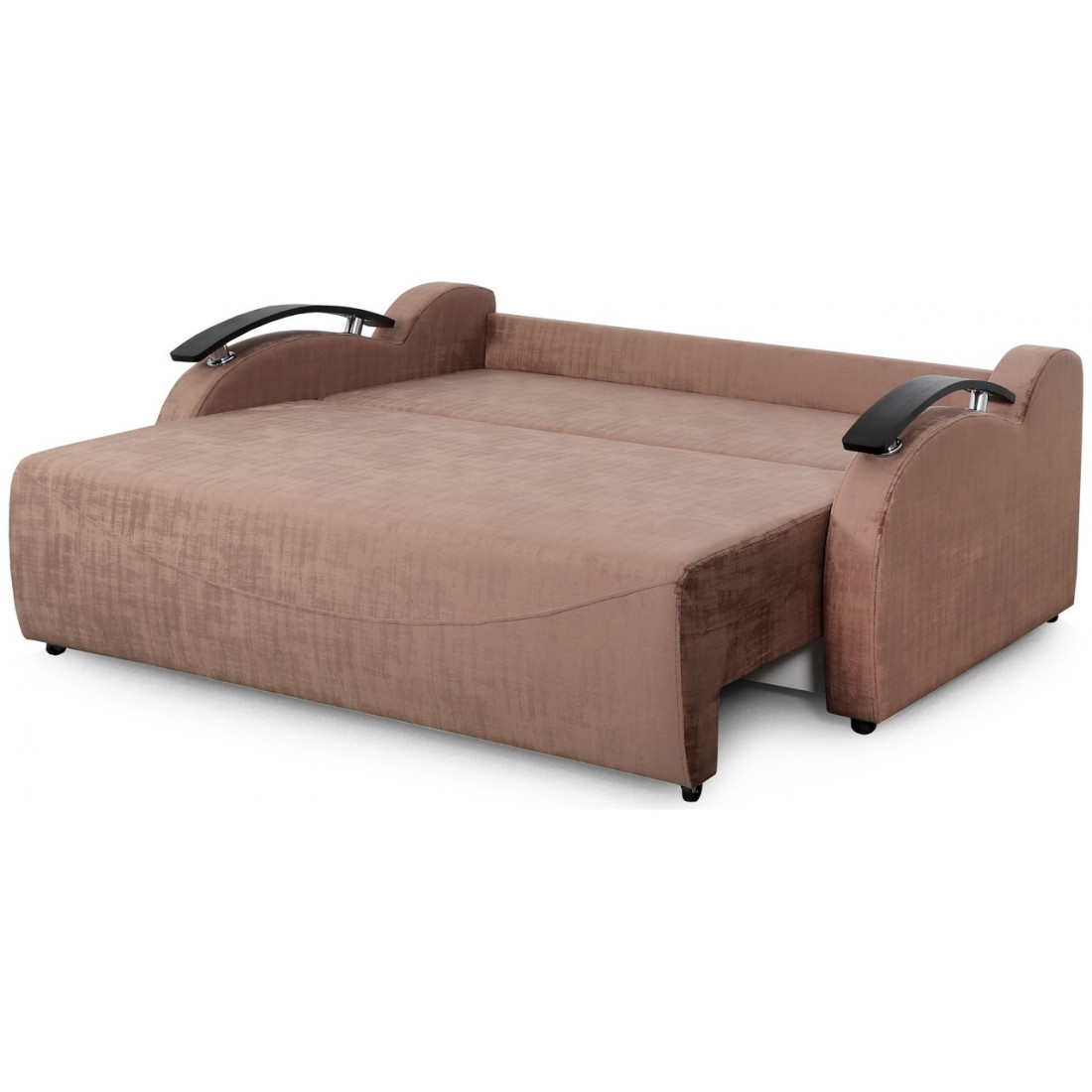 Простые геометрические формы, изогнутые линии подлокотников и стильные вставки создают запоминающийся образ дивана. Ярким акцентом, подчеркивающим стиль модели, являются ручки на царге. Однако их назначение не ограничивается декоративной функцией. Ручки выполняют и важную практическую задачу - за них удобно браться при раскладывании дивана. Благодаря достаточной мягкости приспинные подушки обеспечивают прекрасную поддержку для спины людям любого роста - это очень важно для хорошего отдыха.