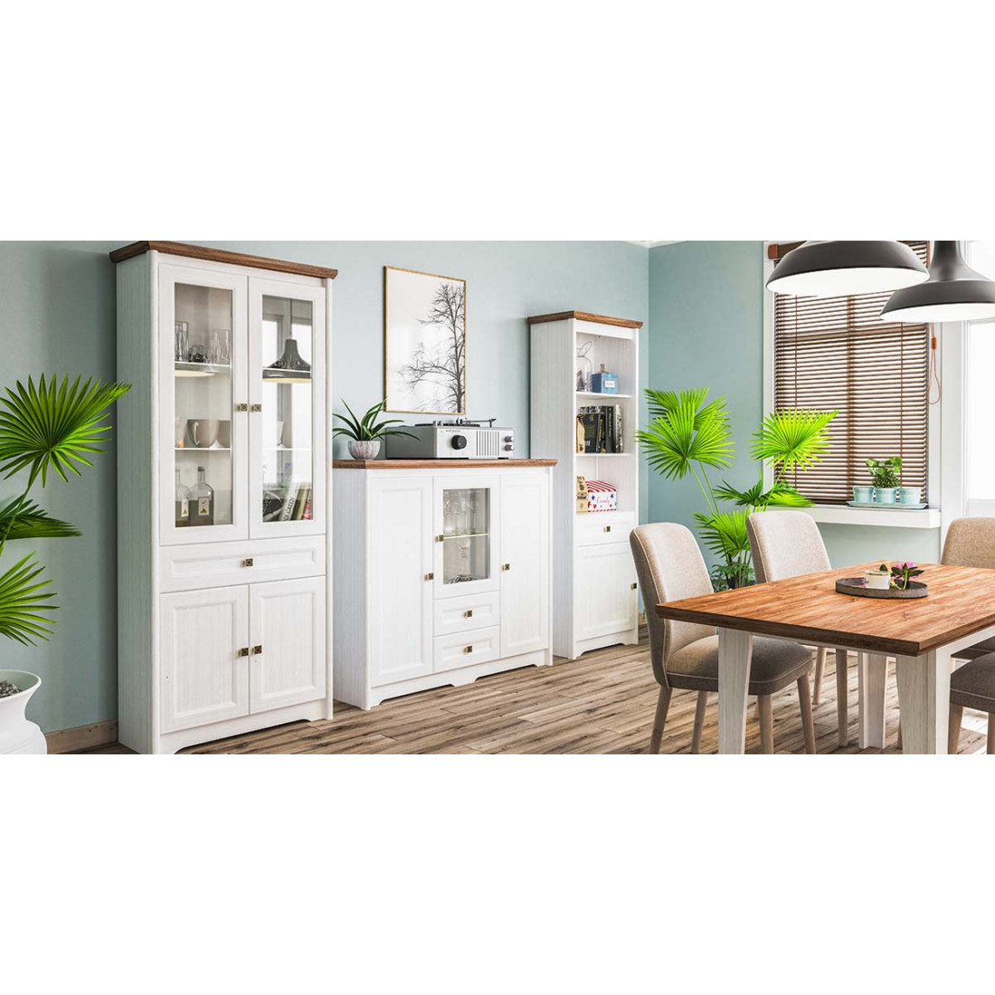 В композиции мебели для гостиной Тиволи присутствуют все элементы, которые призваны обеспечивать комфорт и максимум удобства своим хозяевам: эргономичная тумба под теливизор, высокая многофункциональная тумба, застекленный книжный шкаф (витрина), открытые навесные полки. При желании можно купить модульную гостиную Тиволи, укомплектовав другими элементами серии.