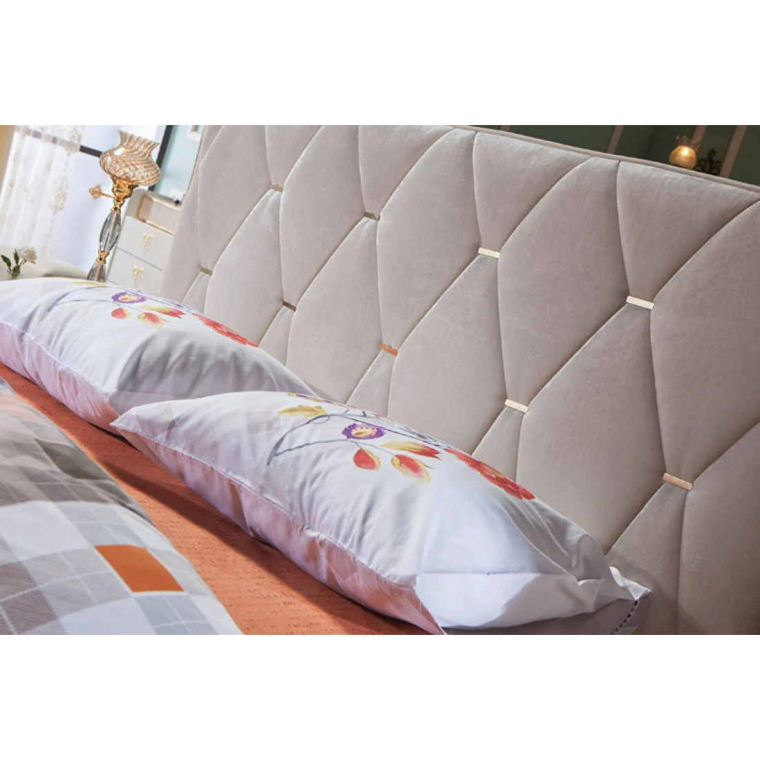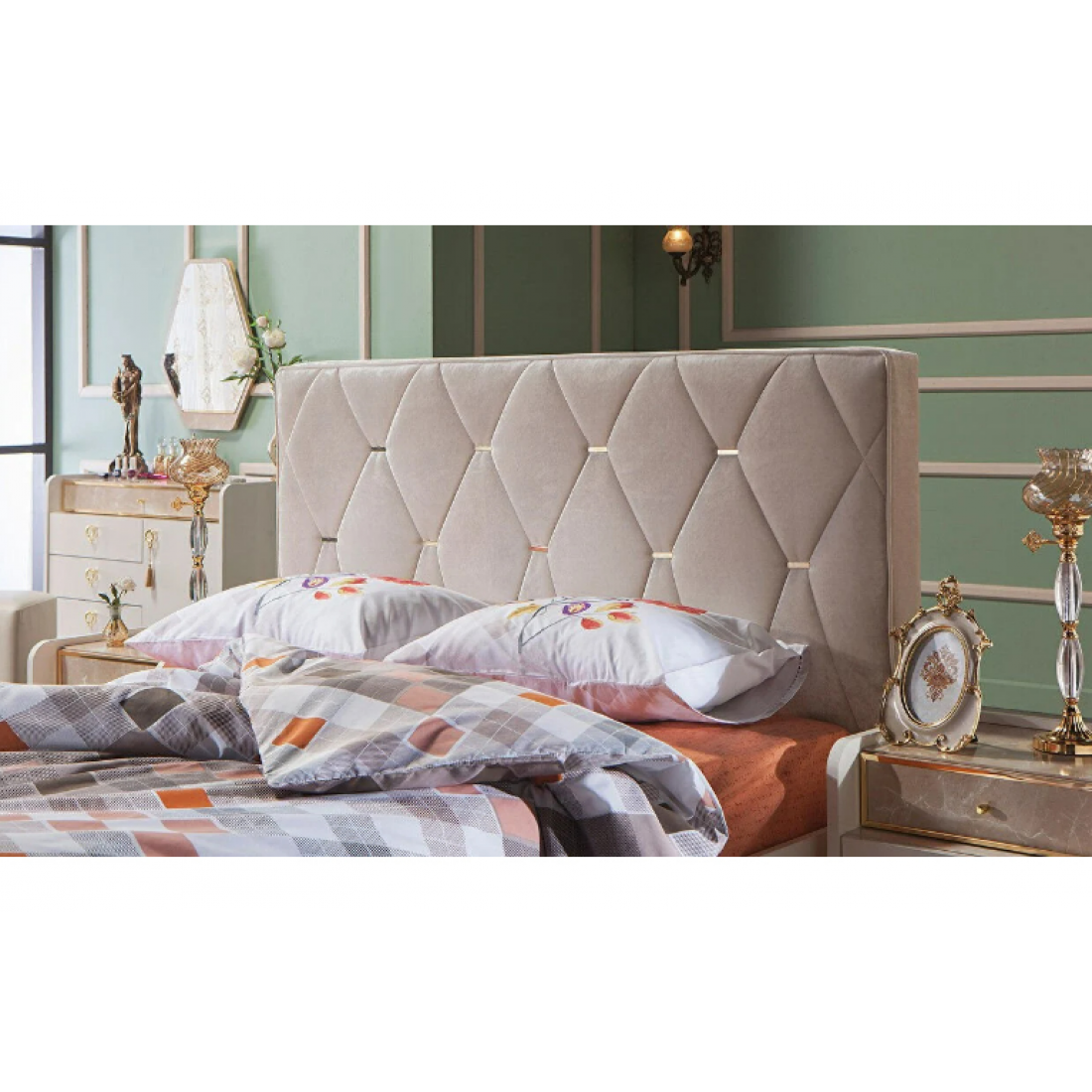 Кровать Monreal со стеганным тканевым изголовьем с металлическими вставками. Изготавливается на спальное место 160х200 см