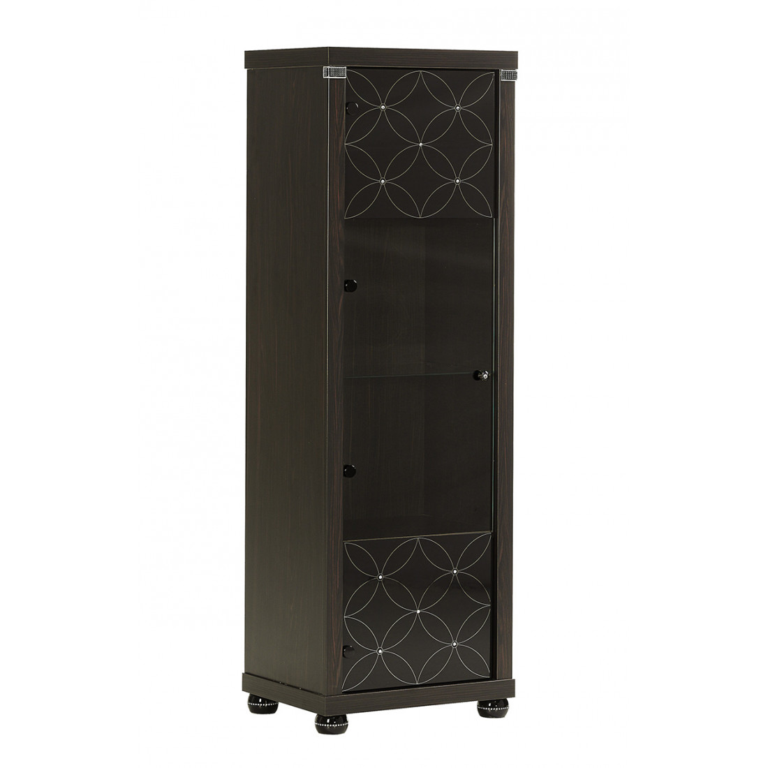 Одностворчатый шкаф-витрина MIRA-02 (венге) серии Мира от Беллона можно использовать для хранения дорогой посуды в столовой или памятных сувениров, кубков, наград в гостиной и рабочем кабинете. Изысканное оформление фасадной части, в котором использовались настоящие кристаллы Swarovski, подчеркнет ценность выставляемой экспозиции. Купить витрину-пенал можно по акции сниженной цены – не упустите возможность!