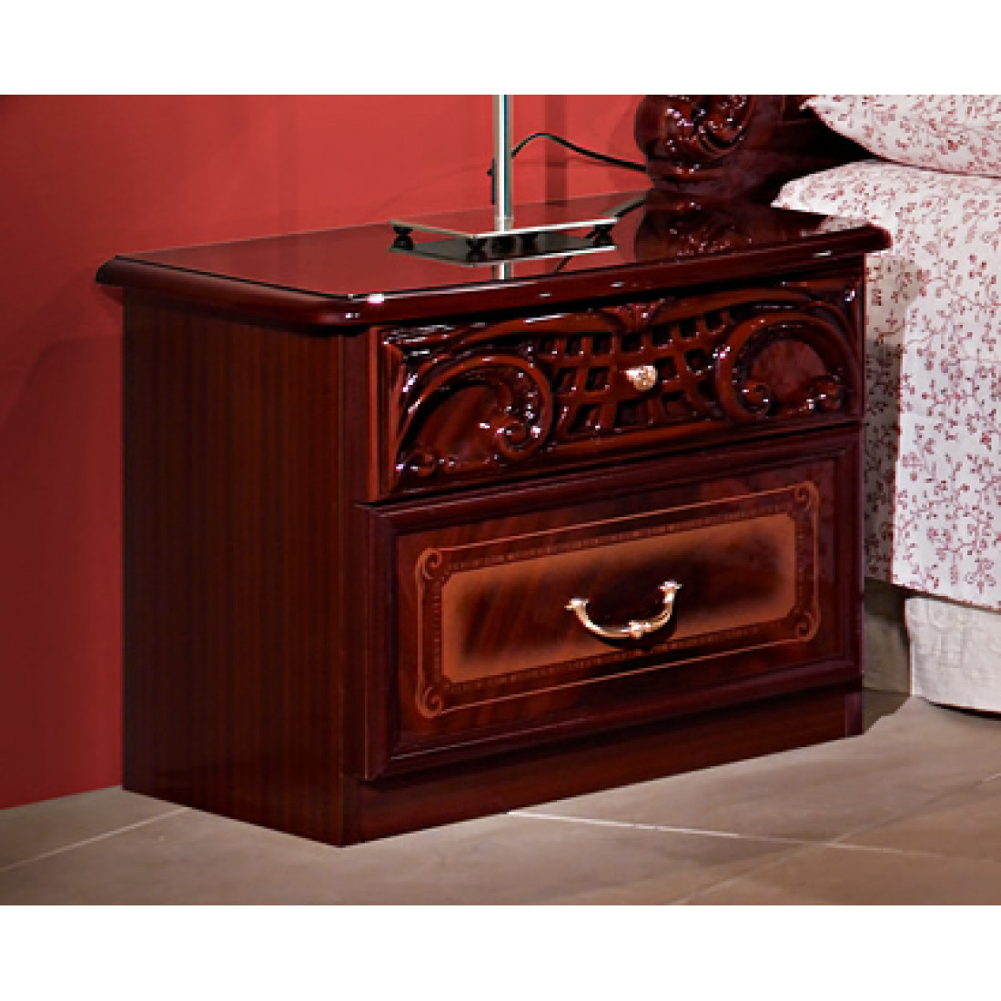 Прикроватная тумба Роза (могано) от Российской фабрики "ДИА мебель". Выполнена в классическом стиле. Она имеет два открывающихся ящика. Маленькая, но очень вместительная и удобная тумбочка удивит Вас своей многофункциональностью. Выполнена в цвете могано и покрыта глянцем. Такая тумбочка подчеркнет чувства стиля любого владельца.