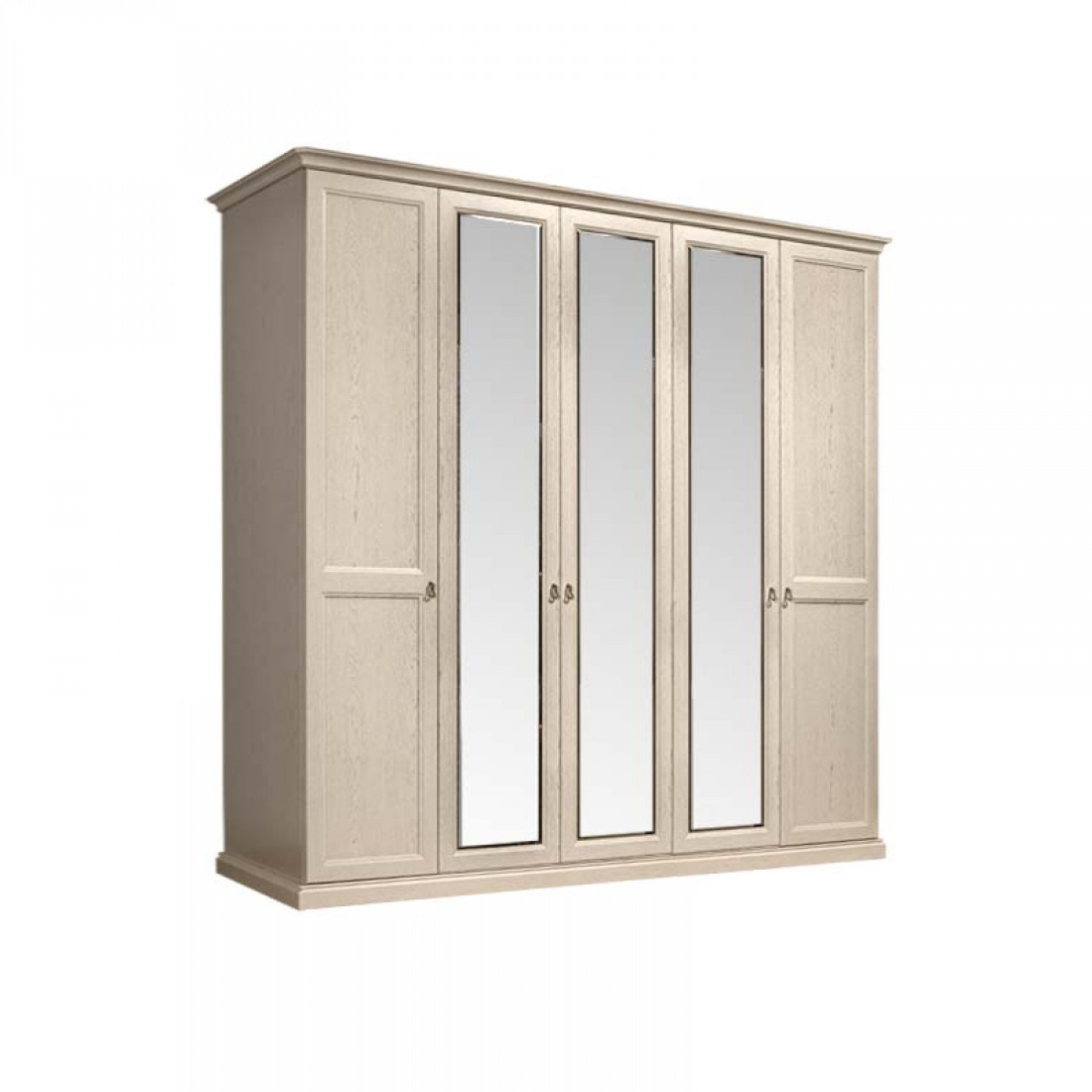 Пятидверный шкаф с зеркалами для платья и белья ВНШ1/5 изготовлен из ламинированной плиты Эггер (Австрия), а также плиты совместного итальянско-российского производства «Карелия ДСП», являющегося лучшим в России производителем мебельных плит, и покрыт итальянским лаком превосходного качества.