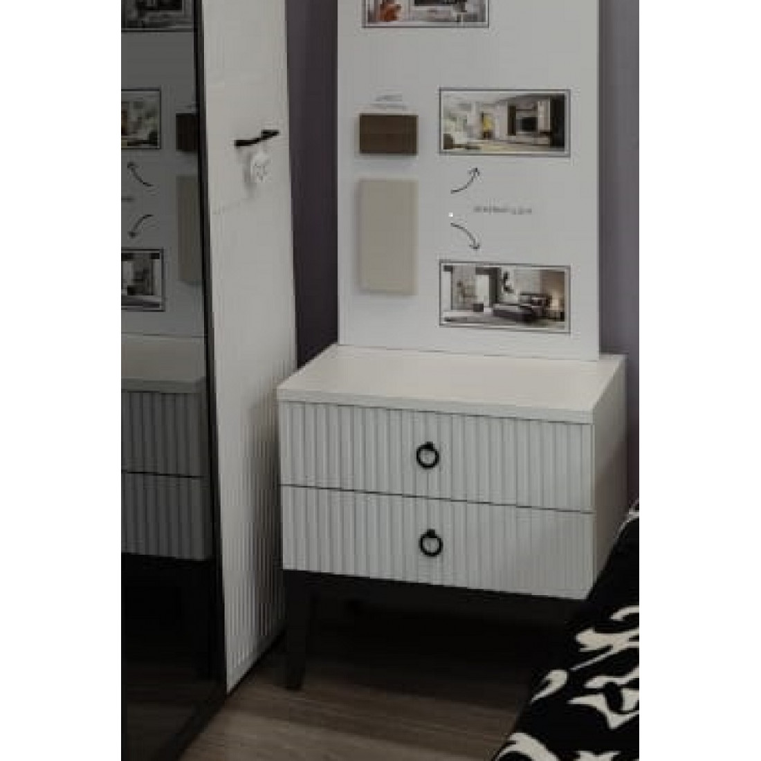 -Фасады ящиков выполнены из МДФ с  декоративной фрезеровкой в виде вертикальных полос и окутаны плёнкой