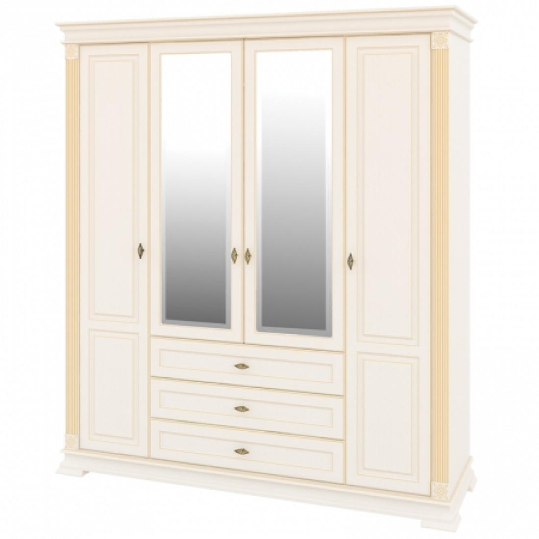 Четырехстворчатый шкаф для одежды с зеркалом Rimini Solo РМШ1/4 (s) (слоновая кость)