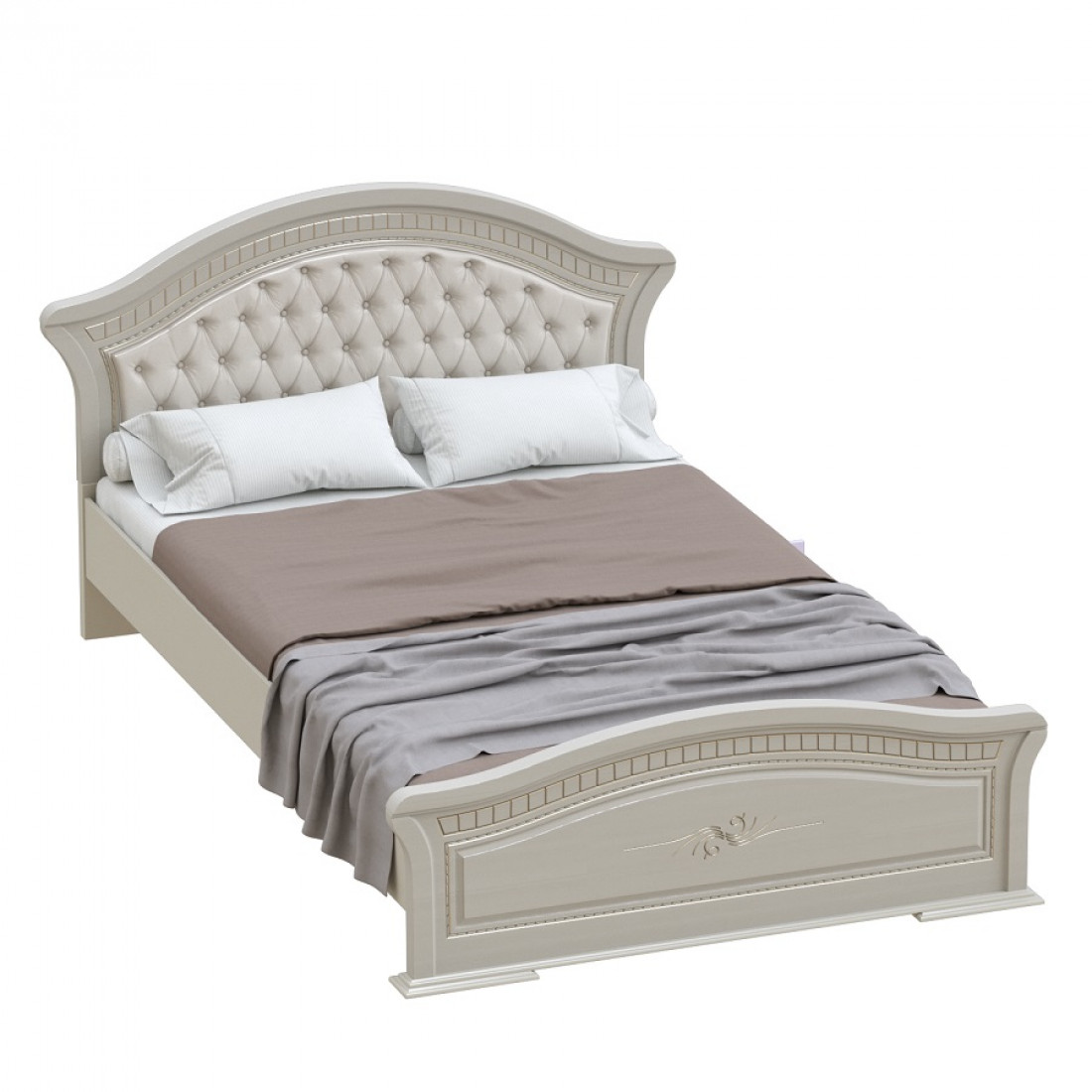 Спальня Николь изготовлена в теплых светлых оттенках и создает атмосферу уюта и спокойствия. Оригинальный декор и мягкое изголовье с декоративными утяжками на кровати придает ей неповторимость. С этим гарнитуром ваша спальная комната будет выглядеть роскошно и изящно.