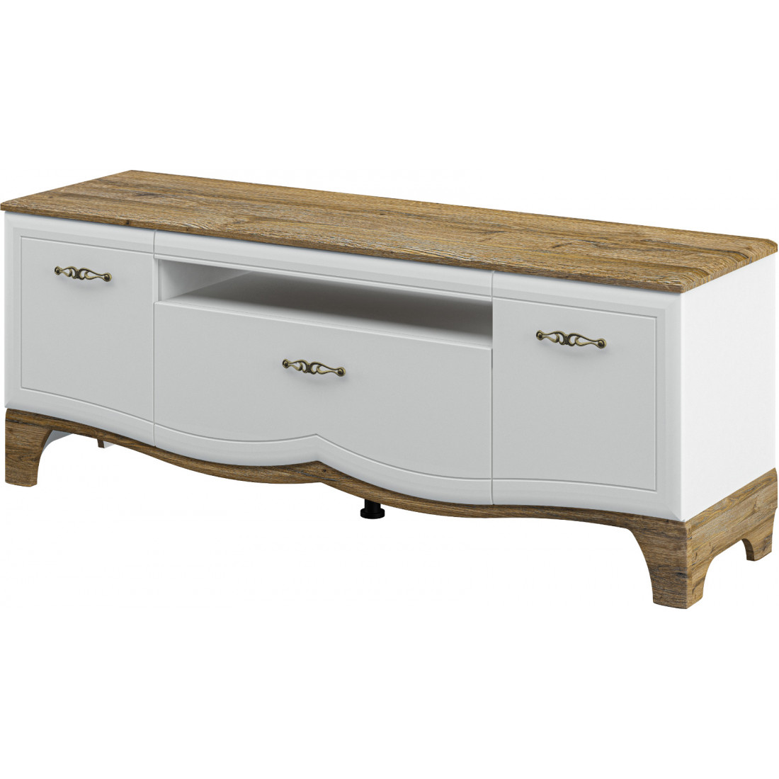 Тумба под телевизор в гостиную МН-041-16 серии Тиффани (Мебель-Неман) в трендовом сочетании выбеленного и насыщенно-шоколадного цветов смотрится свежо и оригинально. Элегантное изящество классики приобретает новое звучание – купить тумбу под Тиффани можно в интерьер любого стиля, в дополнении с другими элементами серии она внесет нотки европейского шарма и неповторимости в общее дизайнерское решение.