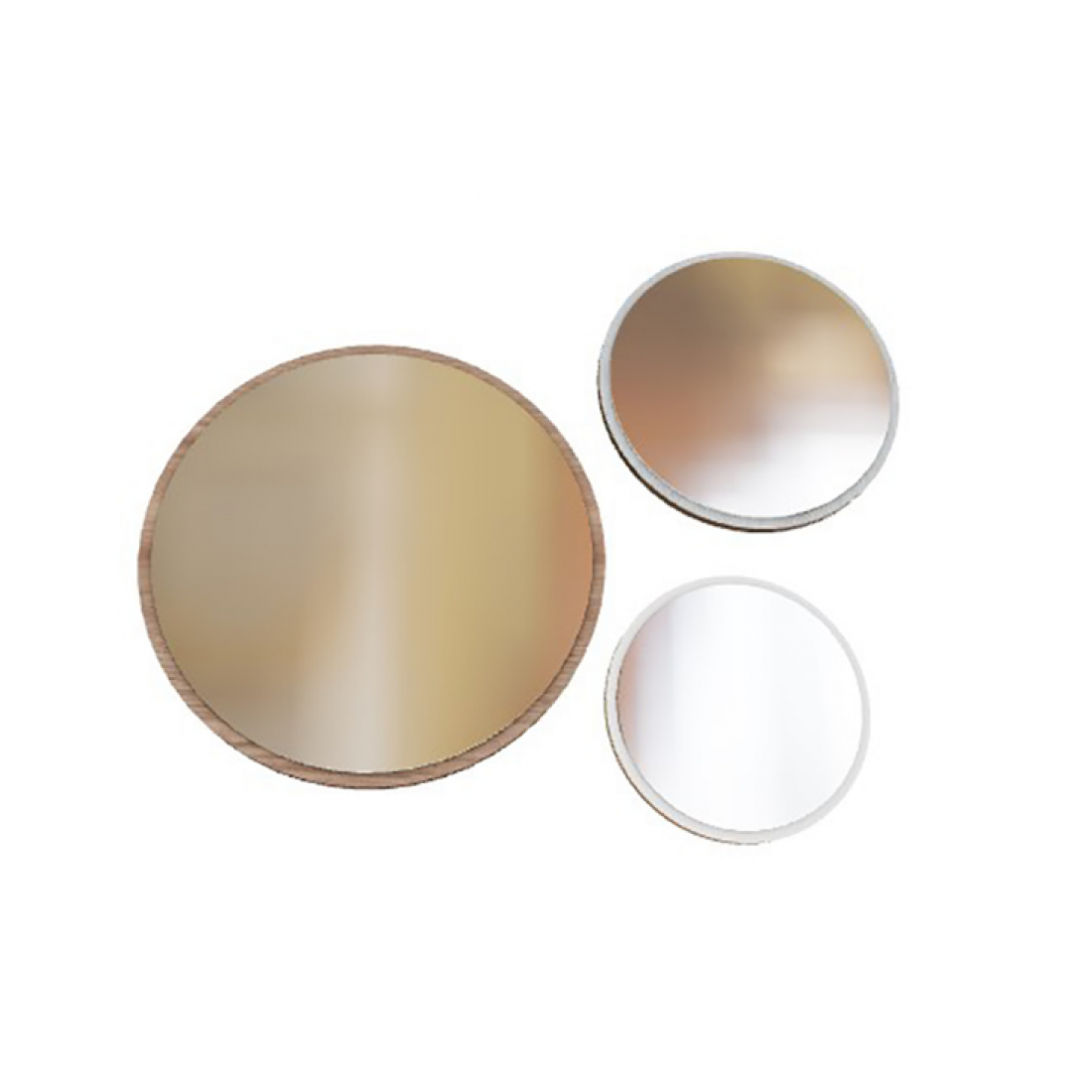 Комплект круглых зеркал на основе из ЛДСП разных цветов дополнит комод Mavenna, также может использоваться по-отдельности. Размер большого зеркала- 70х70 см, размер среднего- 50х50 см, размер маленького зеркала 40х40 см.